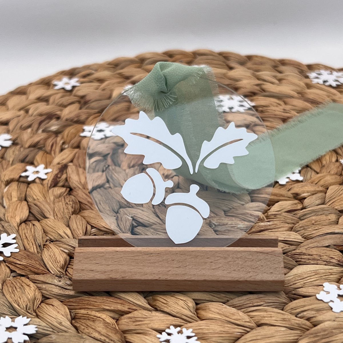 Boule de Noël avec le décor Branche de chêne, symbole de force, de sagesse et de longévité.