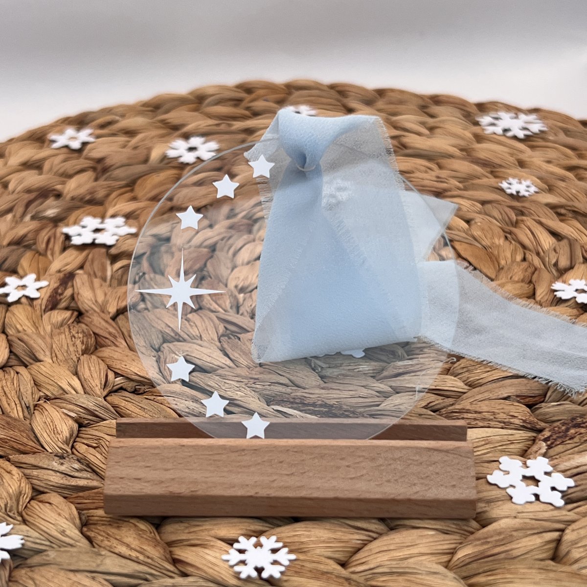 Boule de Noël avec le décor Etoiles scintillantes, symbole d'éclat, de bienveillance et de magie hivernale.