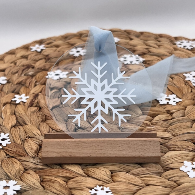 Boule de Noël avec le décor Flocon, symbole de pureté et de magie hivernale.