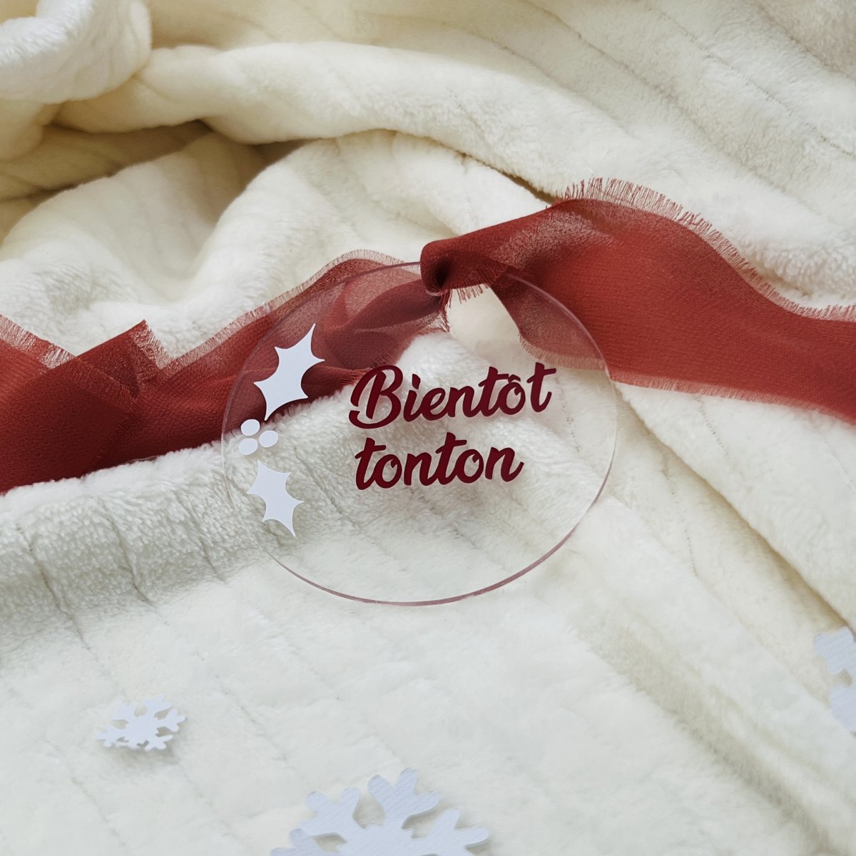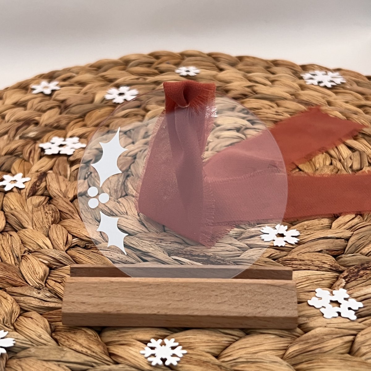 Boule de Noël artisanale, décor blanc raffiné et ruban au choix.
